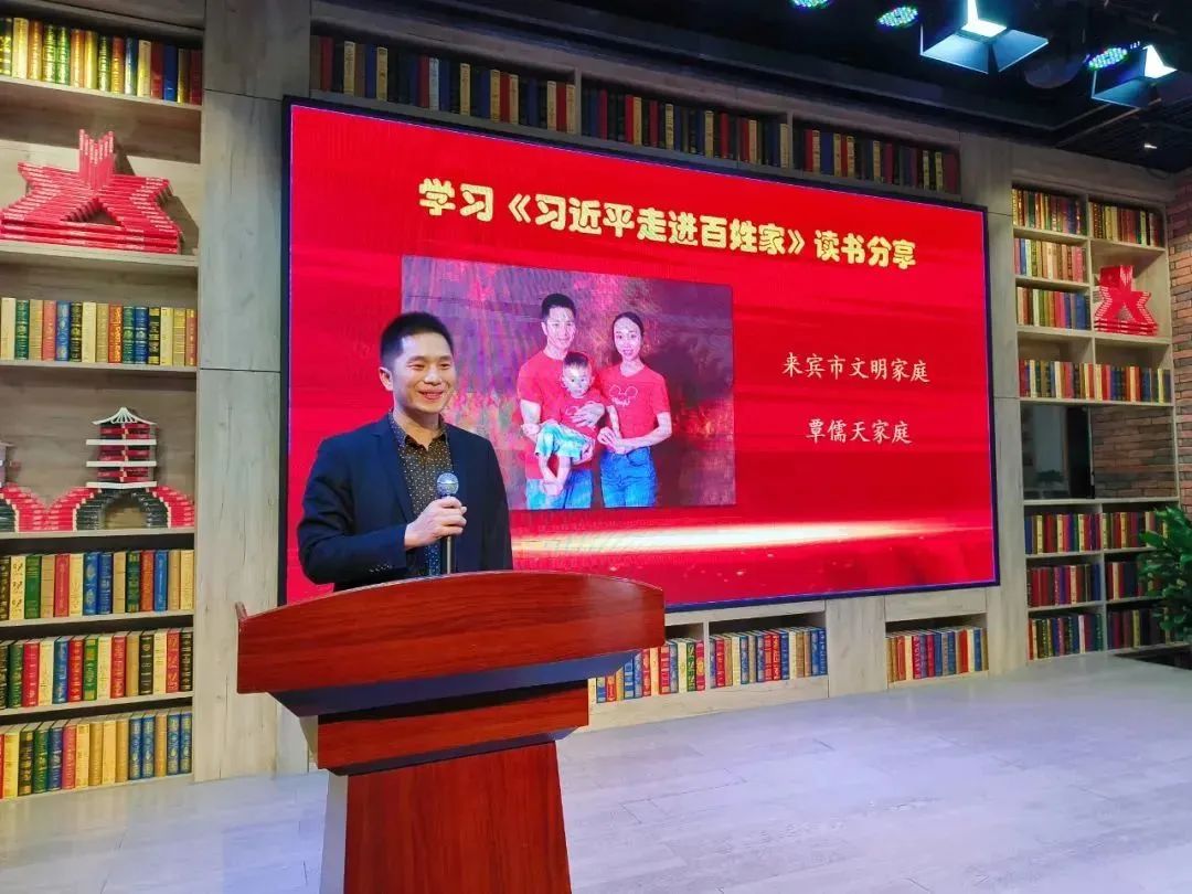 3月7日,由广西壮族自治区来宾市委宣传部、市妇联、市文明办联合主办的“巾帼心向党 奋进新征程 涵养好家风”《习近平走进百姓家》读书分享暨“温暖来宾 最美家”好家风故事会在来宾书城举办。现场开展了家庭亲子诵读《习近平走进百姓家》、文明家庭代表分享读书心得、最美家庭代表分享家风故事等活动,氛围十分活跃。活动的最后,全体人员观看《习近平走进百姓家》宣传视频,诵读《习近平走进百姓家》金句。活动旨在引导广大妇女、家庭深刻感悟习近平新时代中国特色社会主义思想的思想力量和实践动力,把学习《习近平走进百姓家》与全面学习贯彻党的二十大精神紧密结合,持续加强新时代家庭家教家风建设。