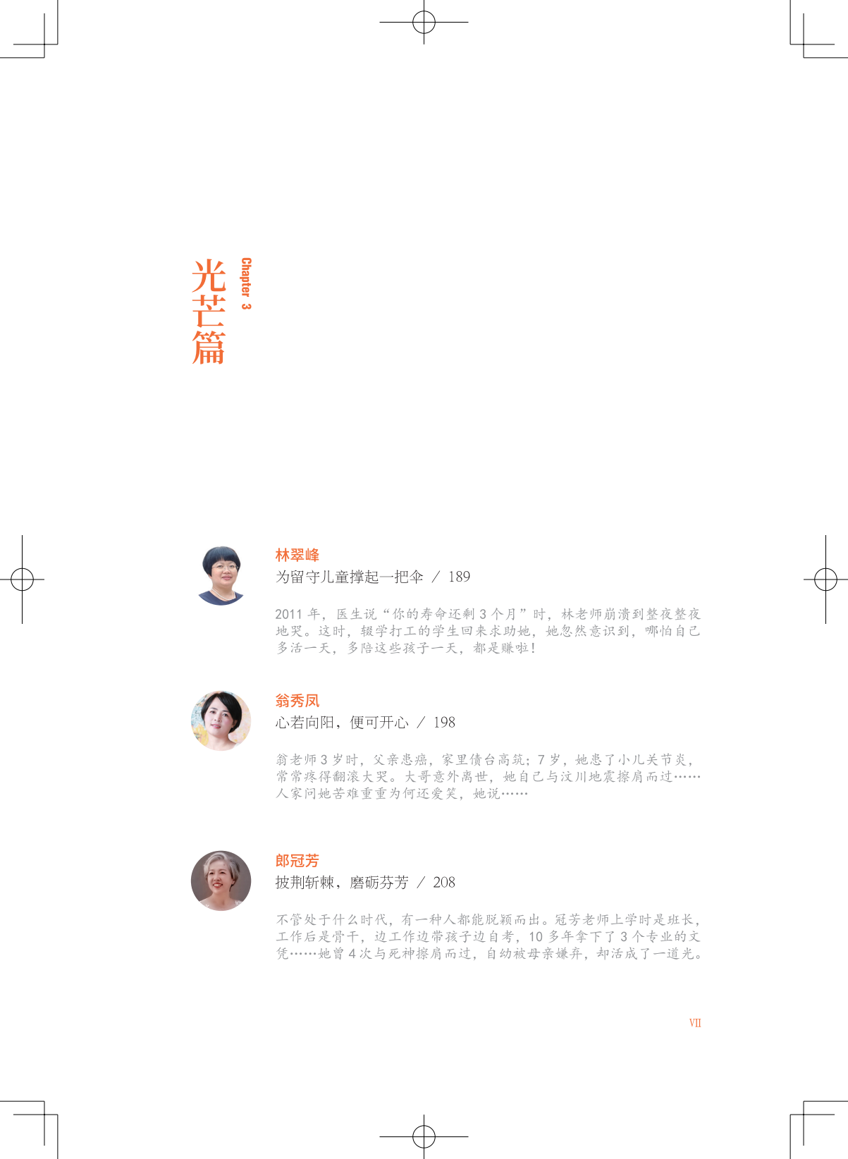这本图书旨在让人“回归平凡”“回归本真”“回归自性”,看见了不起的自己,让每一个平凡的故事都有非凡的光芒。希望这些带着爱和力量的故事,温暖更多向上、有爱、有梦想的平凡人!