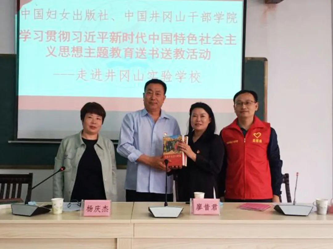 为认真贯彻落实党中央关于深入开展学习贯彻习近平新时代中国特色社会主义思想主题教育有关精神,推动习近平新时代中国特色社会主义思想进课堂进学生头脑,使主题教育取得实效,5月16日,与中国井冈山干部学院联合开展送书送教活动——走进井冈山实验学校。办公室主任、工会主席杨庆杰,中国井冈山干部学院办公厅秘书处处长、机关团委书记廖昔君、井冈山市妇联副主席李晓琳及部分井冈山实验学校教师代表出席活动。