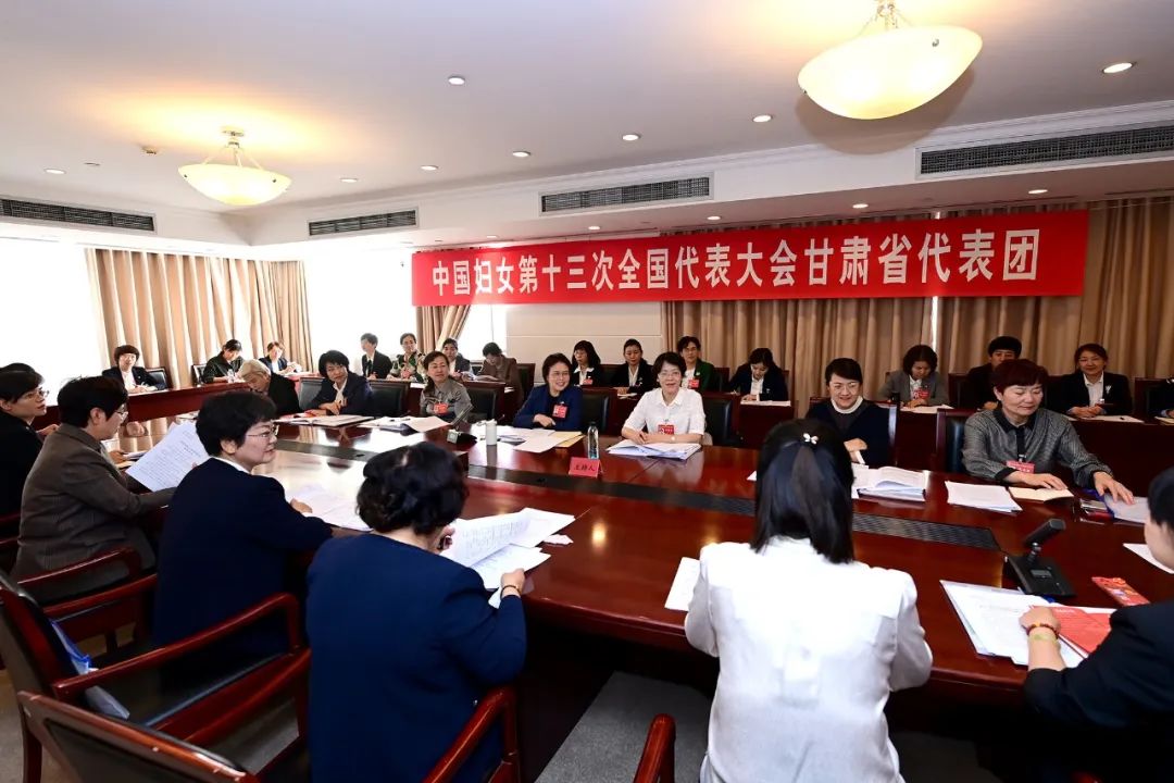 继10月22日与代表们一起集体学习《习近平关于妇女儿童和妇联工作论述摘编》《习近平关于注重家庭家教家风建设论述摘编》之后,10月24日,中国妇女第十三次全国代表大会主席团常务主席黄晓薇来到她所在的甘肃代表团,和代表们共同深入学习习近平总书记重要论述,认真领会党中央致词蕴含的新期望新要求,审议大会报告和《中华全国妇女联合会章程(修正案)》草案。