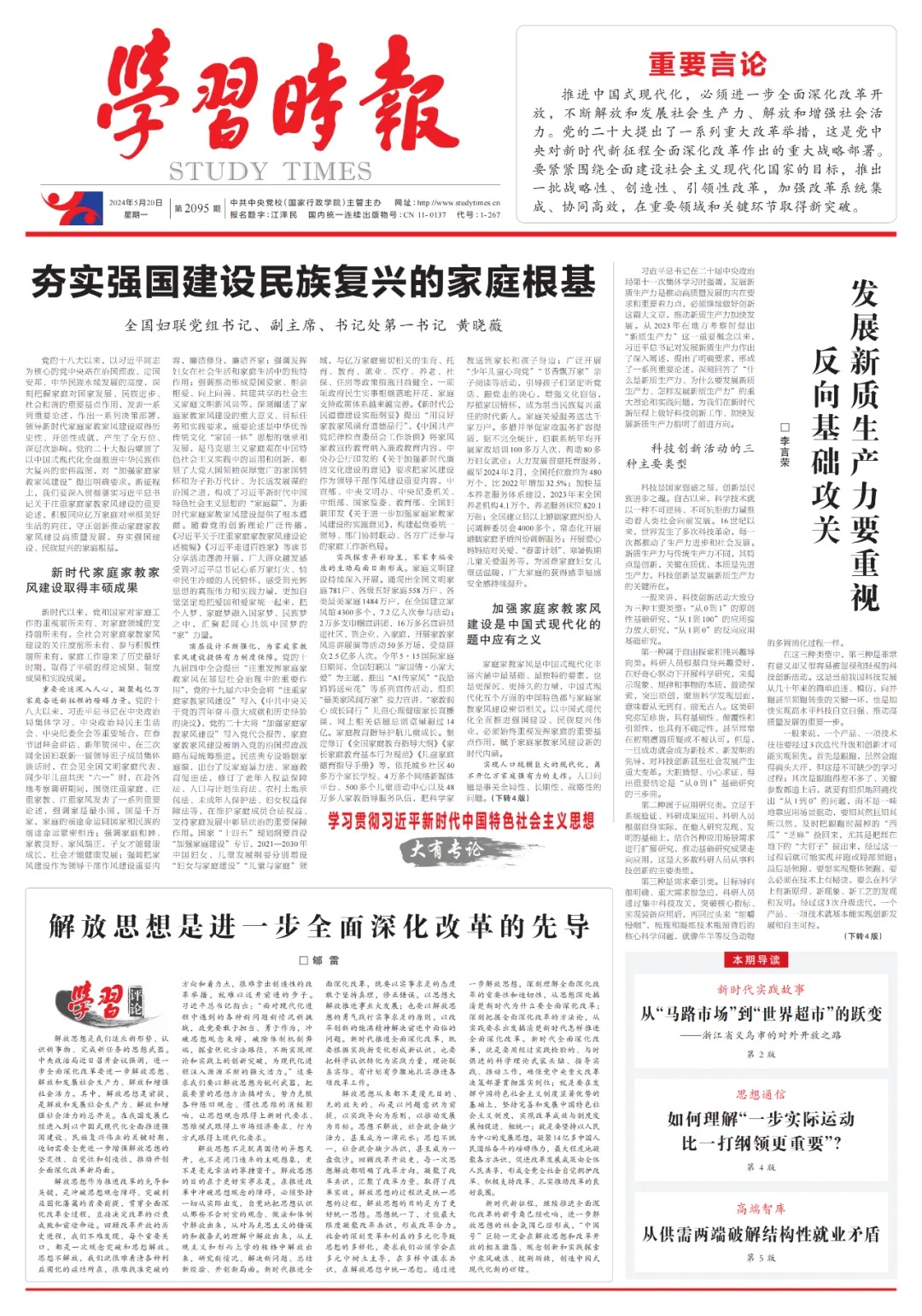 黄晓薇在《学习时报》发表署名文章《夯实强国建设民族复兴的家庭根基》