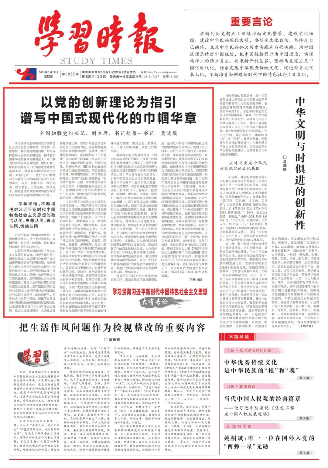 黄晓薇在《学习时报》发表署名文章《以党的创新理论为指引 谱写中国式现代化的巾帼华章》