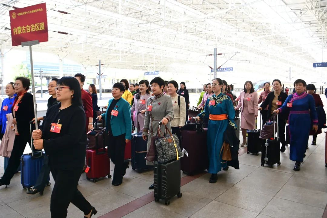流金十月,丹桂飘香。经党中央批准,备受瞩目的中国妇女第十三次全国代表大会将于10月23日至26日在北京召开。10月21日上午10时许,带着内蒙古自治区1100多万女性的嘱托和期待,参加中国妇女十三大的内蒙古代表团顺利抵达北京北站。据悉,这是当日首个抵京的京外代表团,其他省市自治区代表团也将陆续抵达。